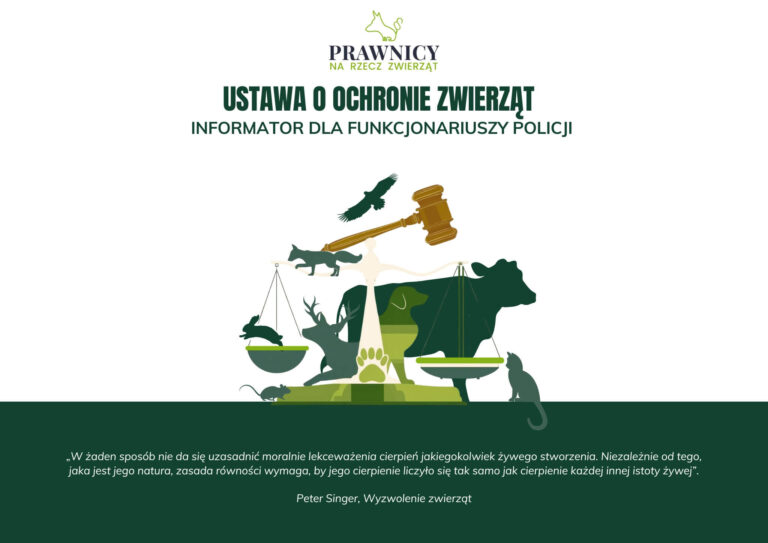 We współpracy z Humane World for Animals przygotowaliśmy kolejną publikację dedykowaną funkcjonariuszkom i funkcjonariuszom Policji pt. „Postępowanie z dzikimi zwierzętami – informator dla Policji”. Głęboko wierzymy w to, że odpowiednie przygotowanie merytoryczne będzie miało wpływ na efektywność ścigania oraz karania sprawców przestępstw i wykroczeń popełnianych przeciwko zwierzętom dzikim.