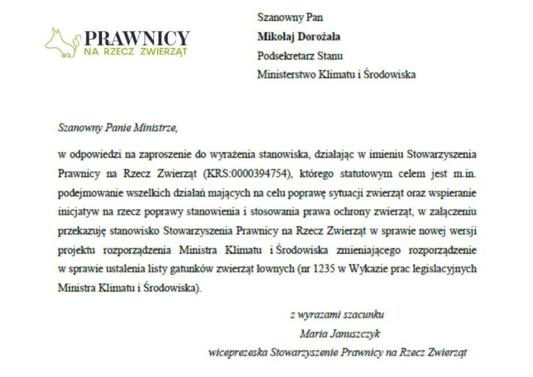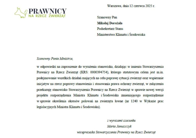 Nasza opinia do rozporządzenia MKiŚ w sprawie określenia okresów polowań na zwierzęta łowne (nr 1240 w wykazie prac legislacyjnych MKiŚ).